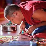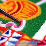 يتم الرسم بالرمل على القماش حيث تحتوي كل ماندالا رملية على نقطة مركزية محاطة بدائرة ، وتصميم متماثل ذي معنى رمزي عميق. في الواقع ، يقال إن جميع الماندالات – هناك واحدة لكل نظام تانترا – لها معنى خارجي وداخلي وسري. تتضمن هذه الرموز الفريدة التي تضم مختلف الرموز والآلهة الدينية ويقال إنها تعالج البيئة والأفراد الموجودين فيها).