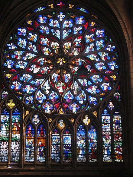 إلى نوافذ الورود القوطية(gothic rose windows) وهو طراز قديم للعمارة شائع في انكلترا وفرنسا وإيطاليا واسبانيا