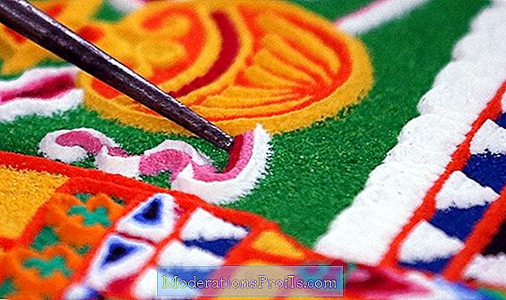 يتم الرسم بالرمل على القماش حيث تحتوي كل ماندالا رملية على نقطة مركزية محاطة بدائرة ، وتصميم متماثل ذي معنى رمزي عميق. في الواقع ، يقال إن جميع الماندالات – هناك واحدة لكل نظام تانترا – لها معنى خارجي وداخلي وسري. تتضمن هذه الرموز الفريدة التي تضم مختلف الرموز والآلهة الدينية ويقال إنها تعالج البيئة والأفراد الموجودين فيها).
