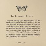 أثر الفراشة الذي لا يُرى يحصل كل يوم مراراً فالتطور الذي تشهده البشرية الآن كان له أثراً خفيّاً لم نراه والذي نعيشه الآن هو دليلٌ على ما سيحصل في المستقبل ..