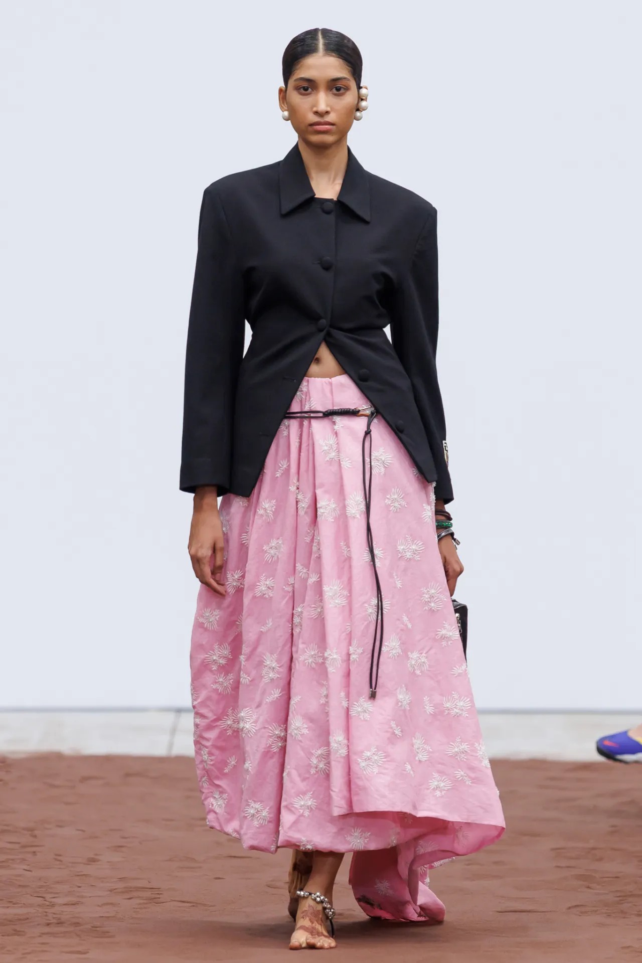 Dhruv Kapoor introduced his Spring/Summer 26 collection, Foundation and Futures, at Milan Fashion Week, a subversive collection that goes against fashion and global cultural norms. Kapoor, an Indian designer, took what was historically hidden, shameful, and immodest and reclaimed it as something to be seen by all. The looks behind this collection revolve around combining Indian cultural clothing with traditional undergarments; the Foundation with the Future. The silhouettes were untraditional as Kapoor experimented with layering, petticoats and slips were intentionally shown and elevated. Designs featured classic Indian pieces, like the kurta and bandhgala jacket, altered and adapted to show that tradition does have a place in a modern climate. Mixing masculine with feminine and transforming tradition, Kapoor’s collection was bold in its intention, bringing visibility to the invisible.