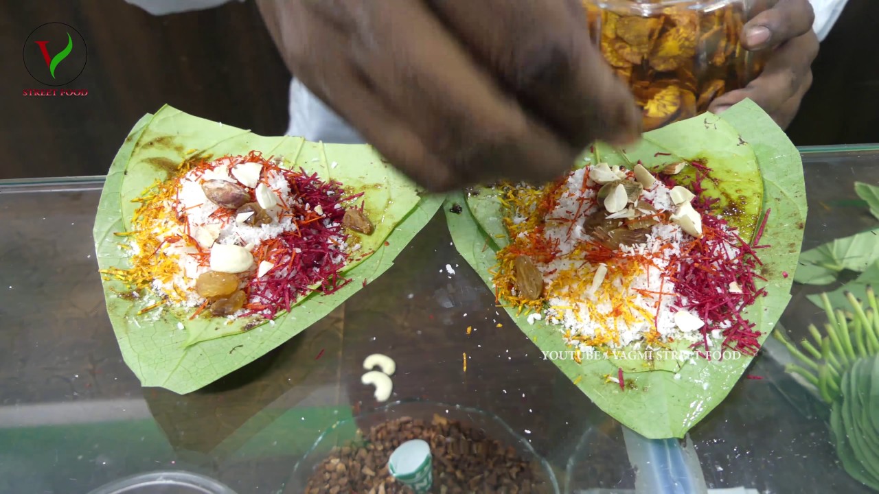 The dry fruit or mitha paan is a delight for sweet lovers, and it is made up of betel leaves filled with sweet jam-like spreads and crunchy titbits like raisins, tutti-frutti, cherries, and chopped dates. Since this type of paan has a sweet side, it is the equivalent of traditional Indian desserts since it is delicious and an effective mouth freshener.
